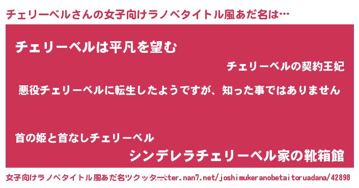 | 男性向けラノベタイトル風あだ名 | 『この素晴らしい世界にチェリーベルを!』 |