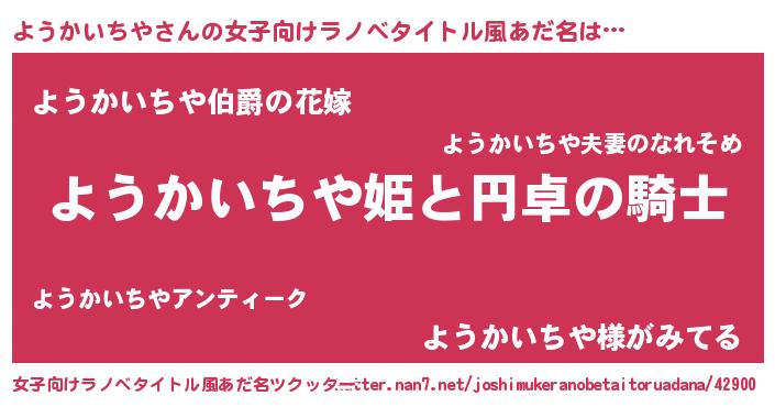 | 男性向けラノベタイトル風あだ名 | 『ようかいちやの憂鬱』 |