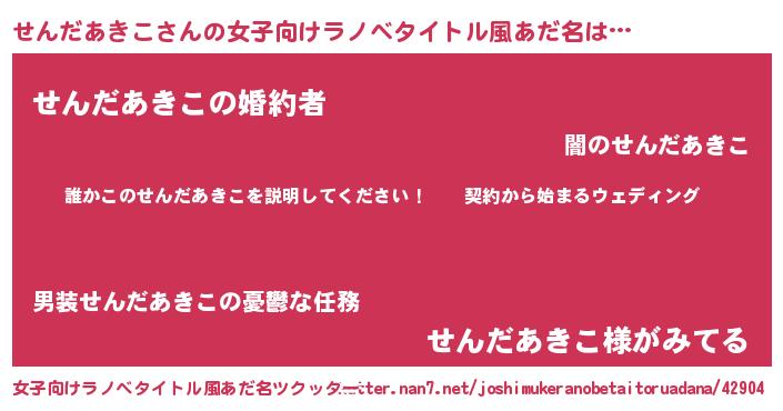 | 肩書あだ名 | 『せんだあきこ店長』『せんだあきこ団長』 |