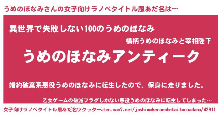 | 肩書あだ名 | 『うめのほなみ閣下』『うめのほなみ先生』 |