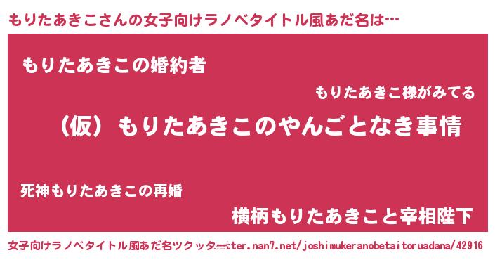 | 男性向けラノベタイトル風あだ名 | 『もりたあきこの憂鬱』 |