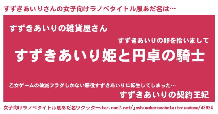 | 男性向けラノベタイトル風あだ名 | 『スズキアイリアートオンライン』 |
