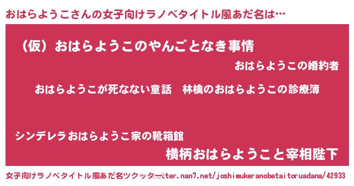 | 欧米人風あだ名 | 『ダレノガレおはらようこ』 |