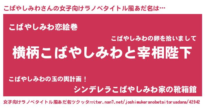 | 男性向けラノベタイトル風あだ名 | 『こばやしみわに滅ぼされるだけの簡単なお仕事です』 |