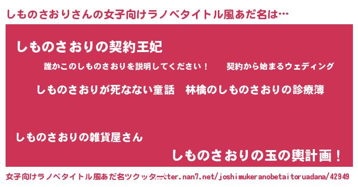 | 伝説のあだ名 | 『聞きしに勝る勇者しものさおり』 |
