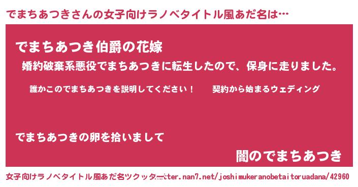 | 男性向けラノベタイトル風あだ名 | 『デマチアツキアートオンライン』 |