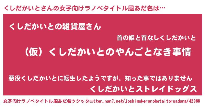 | 男性向けラノベタイトル風あだ名 | 『くしだかいとの憂鬱』 |