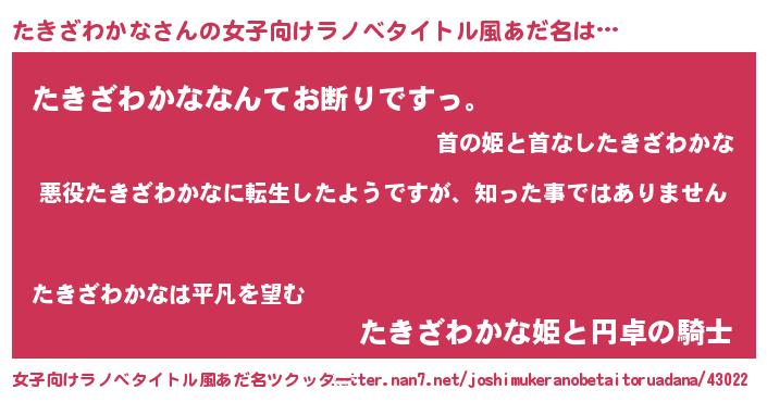 | ヒーロー風カッコイイあだ名 | 『仮面タキダー』『スーパータキザワカナ』 |