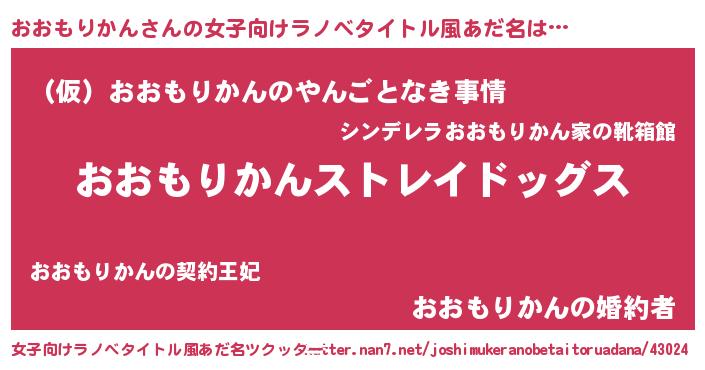 | 男性向けラノベタイトル風あだ名 | 『Re:おおもりかんから始める異世界生活』 |