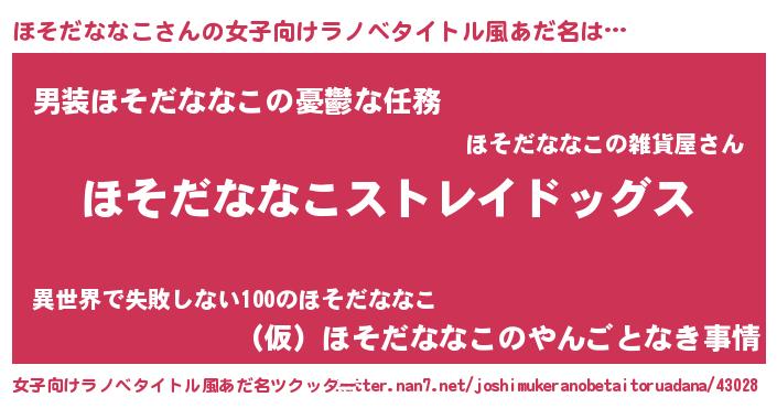 | 男性向けラノベタイトル風あだ名 | 『Re:ほそだななこから始める異世界生活』 |