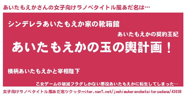 | ヘコむあだ名 | 『あいたもえか(笑)』『あいにゅー』 |