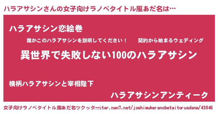 | ヘコむあだ名 | 『ハラアサシン(笑)』『ハラにー』 |