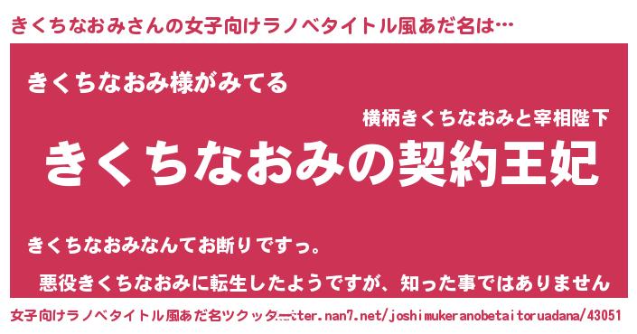 | 男性向けラノベタイトル風あだ名 | 『誰もが恐れるあのきくちなおみが、ぼくの専属メイドになるようです。』 |