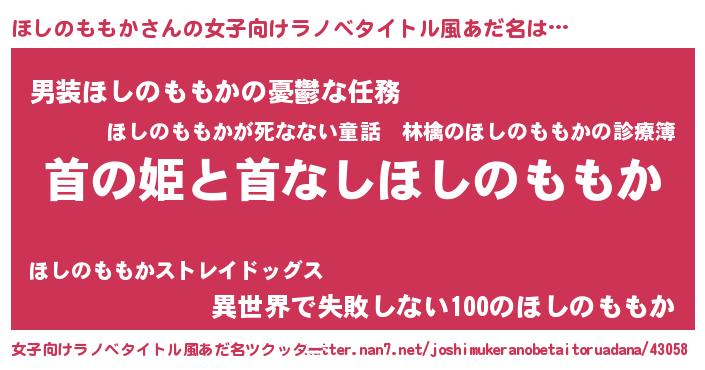 | ヘコむあだ名 | 『ほしのももか(笑)』『ほしにー』 |