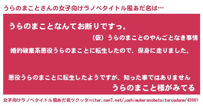 | 男性向けラノベタイトル風あだ名 | 『ウラノマコトスレイヤー』 |