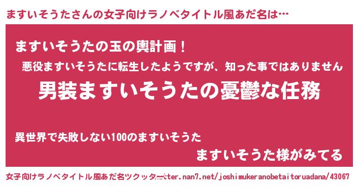 | ヘコむあだ名 | 『ますぷりん』『ますいそうた(笑)』 |