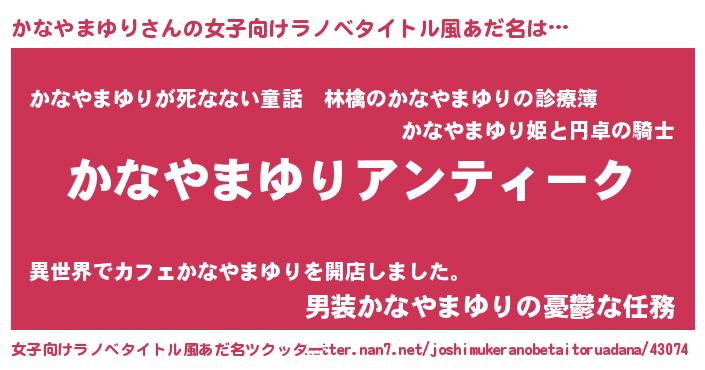| ヘコむあだ名 | 『かなっふぃ~』『かなやまゆり(遠い目)』 |