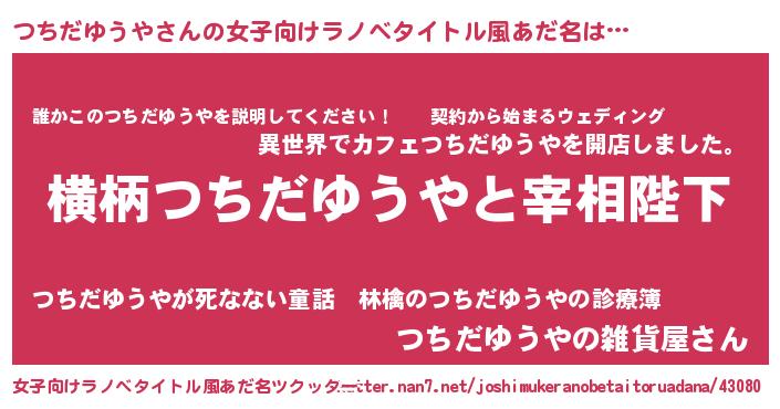 | 胡散臭い通販商品みたいなあだ名 | 『億万長者になれるブレスレット…その名も「つちだゆうや」』 |