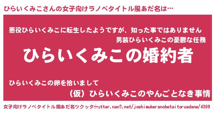 | ファンタジー風あだ名 | 『エターナルヒライクミコー』 |