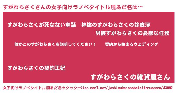 | 胡散臭い通販商品みたいなあだ名 | 『億万長者になれる霊験あらたかなお札…その名も「すがわらさく」』 |