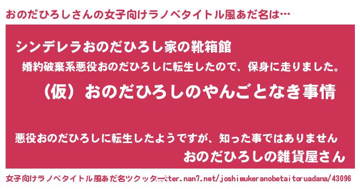 | 男性向けラノベタイトル風あだ名 | 『おのだひろしの憂鬱』 |
