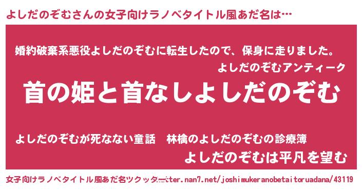 | 男性向けラノベタイトル風あだ名 | 『はたらくよしだのぞむさま!』 |
