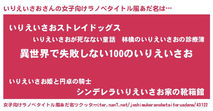 | 男性向けラノベタイトル風あだ名 | 『いりえいさおという概念が存在しない退屈な世界 』 |