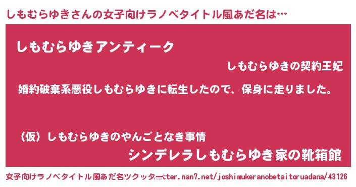| 男性向けラノベタイトル風あだ名 | 『転生したらしもむらゆきだった件』 |