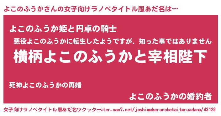 | 男性向けラノベタイトル風あだ名 | 『よこのふうかに滅ぼされるだけの簡単なお仕事です』 |