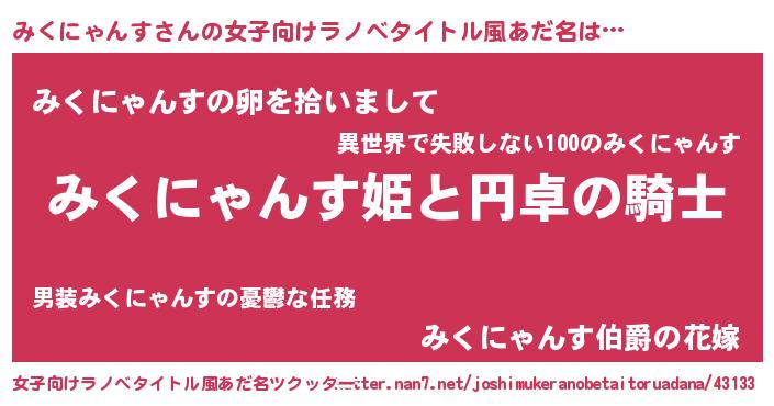 | 胡散臭い通販商品みたいなあだ名 | 『モテモテ間違いなし霊験あらたかなお札…その名も「みくにゃんす」』 |