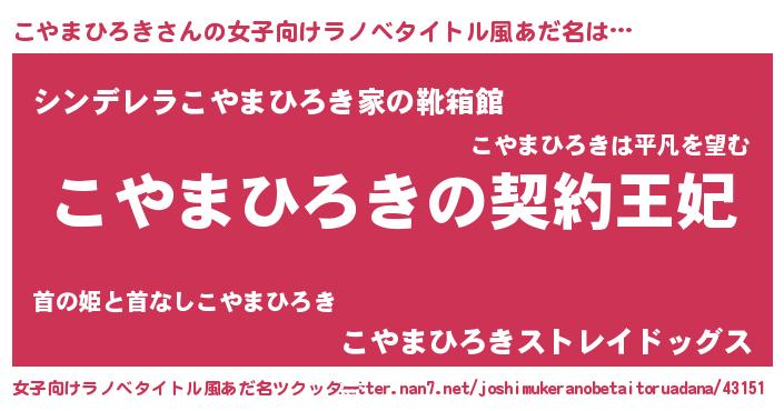 | 男性向けラノベタイトル風あだ名 | 『こやまひろきという概念が存在しない退屈な世界 』 |