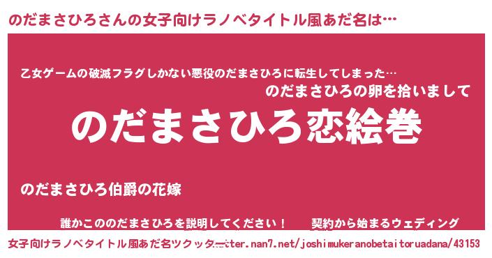 | 男性向けラノベタイトル風あだ名 | 『ノーゲーム・ノーノダマサヒロ』 |