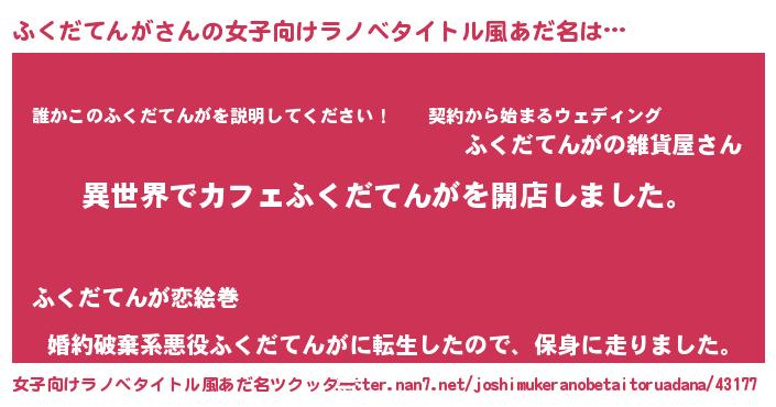 | 男性向けラノベタイトル風あだ名 | 『誰もが恐れるあのふくだてんがが、ぼくの専属メイドになるようです。』 |