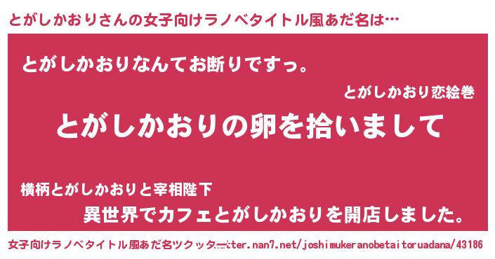 | 胡散臭い通販商品みたいなあだ名 | 『伝統あるサプリメント…その名も「とがしかおり」』 |