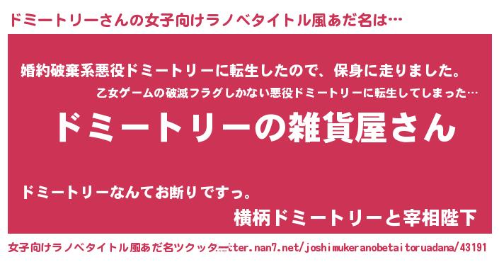 | 男性向けラノベタイトル風あだ名 | 『やはりドミートリーの青春ラブコメはまちがっている 』 |
