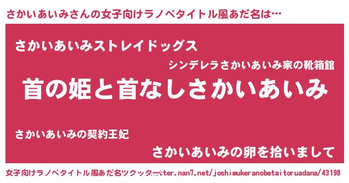 | 意味不明あだ名 | 『自称さかいあいみ』 |