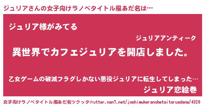 | ヒーロー風カッコイイあだ名 | 『ネオジュリア』『幻影騎士ジュ』 |