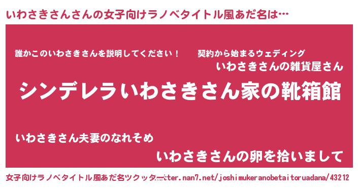 | 胡散臭い通販商品みたいなあだ名 | 『必ず成功する霊験あらたかなお札…その名も「いわさきさん」』 |