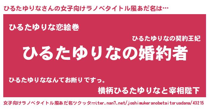 | 胡散臭い通販商品みたいなあだ名 | 『運命の人と巡り会える高級そうな絵画…その名も「ひるたゆりな」』 |