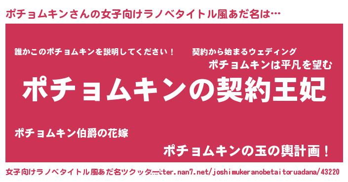 | 男性向けラノベタイトル風あだ名 | 『誰もが恐れるあのポチョムキンが、ぼくの専属メイドになるようです。』 |