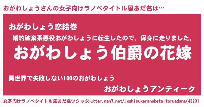 | ファンタジー風あだ名 | 『エターナルオガワショウー』 |