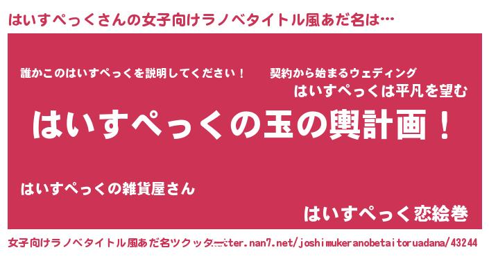 | 胡散臭い通販商品みたいなあだ名 | 『億万長者になれる水晶球…その名も「はいすぺっく」』 |