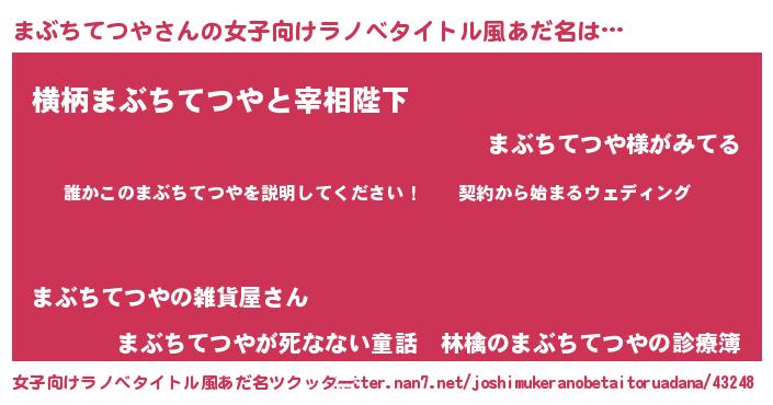 | 胡散臭い通販商品みたいなあだ名 | 『億万長者になれるブレスレット…その名も「まぶちてつや」』 |
