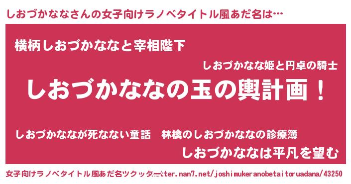 | 胡散臭い通販商品みたいなあだ名 | 『全米が絶賛したサプリメント…その名も「しおづかなな」』 |