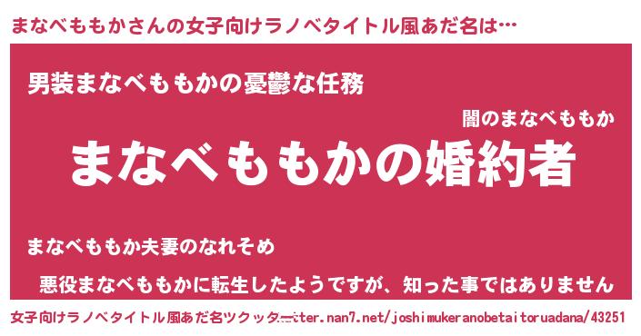 | 胡散臭い通販商品みたいなあだ名 | 『運命の人と巡り会える高級そうな壺…その名も「まなべももか」』 |