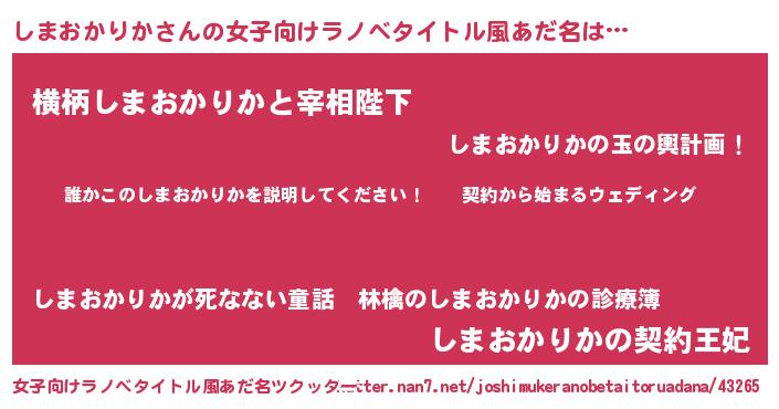 | 胡散臭い通販商品みたいなあだ名 | 『億万長者になれるブレスレット…その名も「しまおかりか」』 |