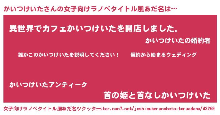 | 男性向けラノベタイトル風あだ名 | 『カイツケイタアートオンライン』 |