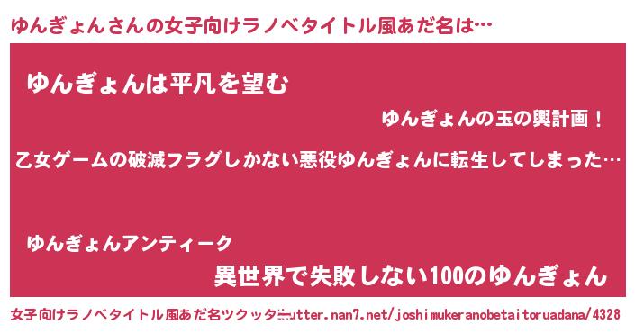 | 胡散臭い通販商品みたいなあだ名 | 『世界中を虜にした世界で10本だけ現存している希少なブランデー…その名も「ゆんぎょん」』 |