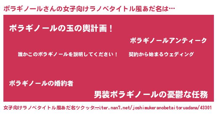 | 男性向けラノベタイトル風あだ名 | 『ボラギノールアートオンライン』 |