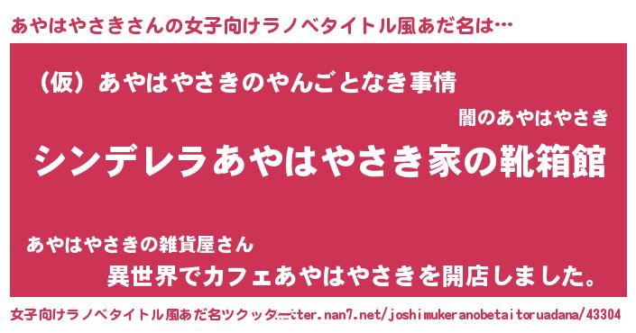 | ヘコむあだ名 | 『あやっふぃ~』『あやはやさき(小並感)』 |